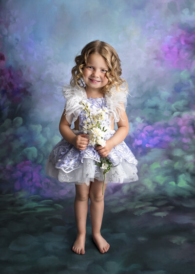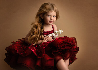 If you choose, you can book a hair and makeup session with our artist to style your child’s hair for that extra touch of glamour. We also have crowns, tiaras, floral accessories, and wands to complete the look.